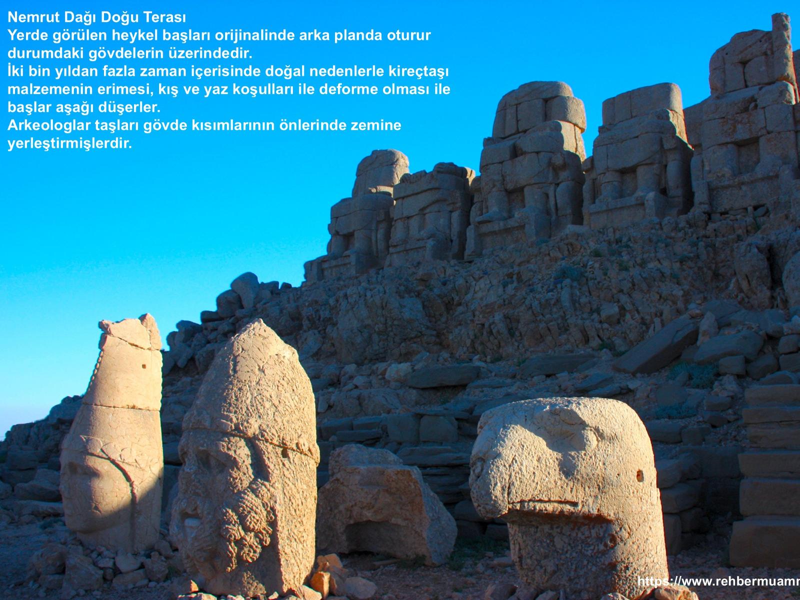 Doğu terasındaki güney ‘den kuzeye doğru, yani heykellere yüzümüzü dönünce soldan sağa doğru sayalım.