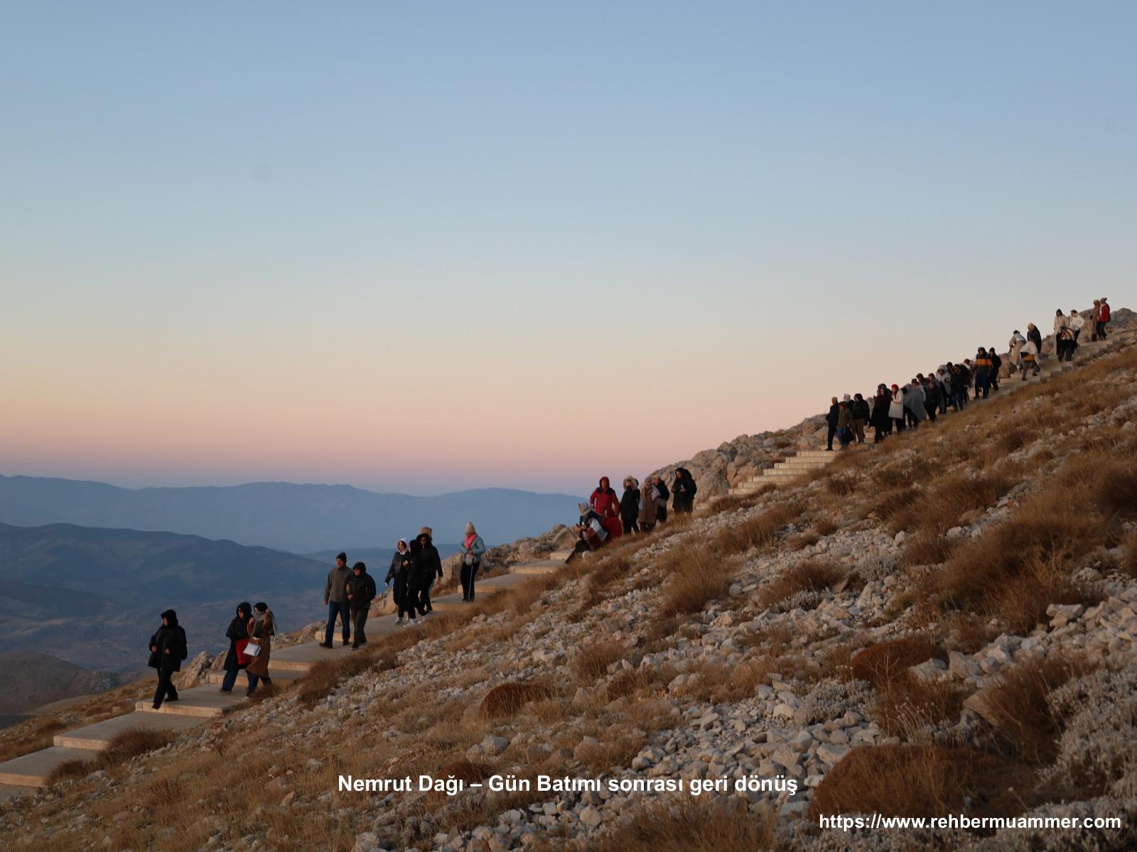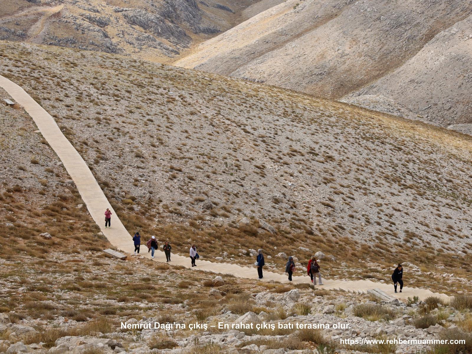 Karşılama merkezindeki gişe işlemleri ve ihtiyaç molasının ardından Nemrut Dağı tümülüsüne araçlar ile yaklaşık 2 km’lik bir yolculuk var.