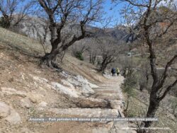 Bugün de araçtan inip yukarıya çıkışa başlanılan giriş yerinde bulunan anıtsal giriş kapısından kayaya oyulmuş bu kemerli alana kadar kutsal yürüyüş yolu vardı.