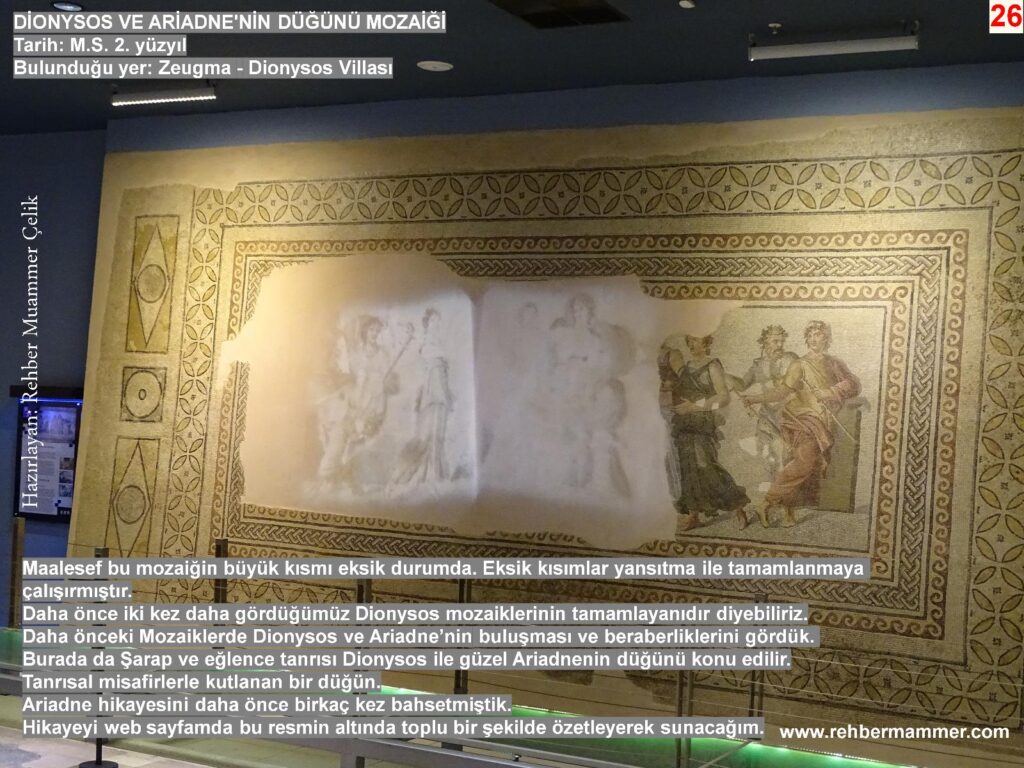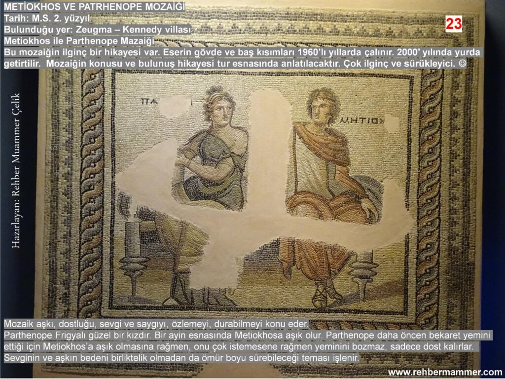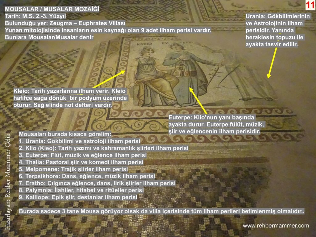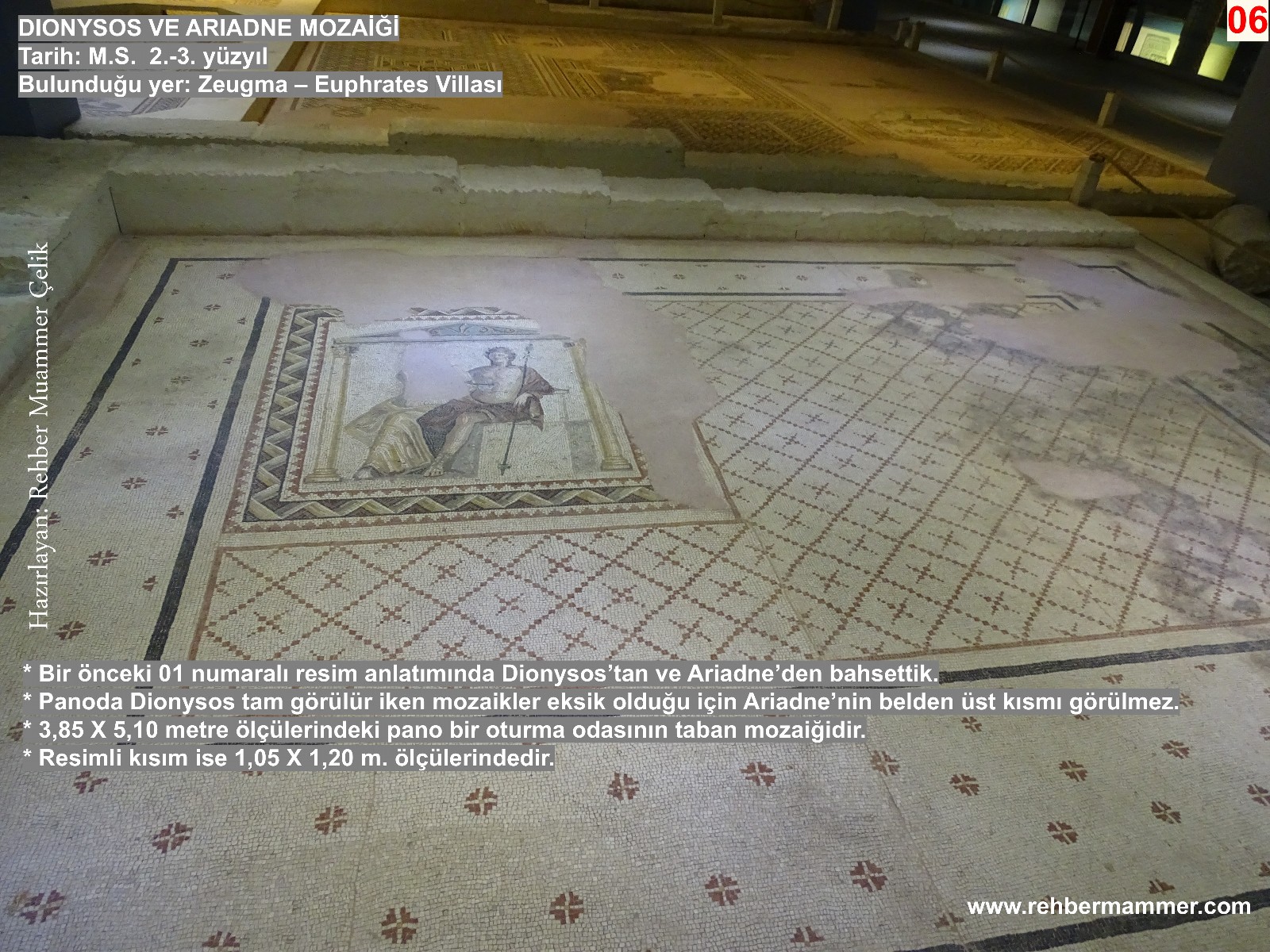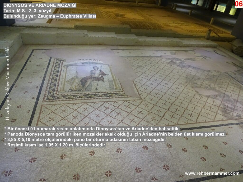 * Eserlerin büyük çoğunluğu Zeugma antik kentine ait olduğu için müze Zeugma Mozaik müzesi olarak adlandırılır.
