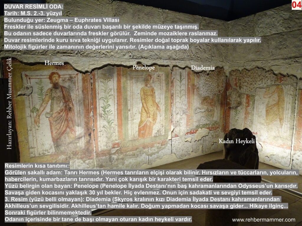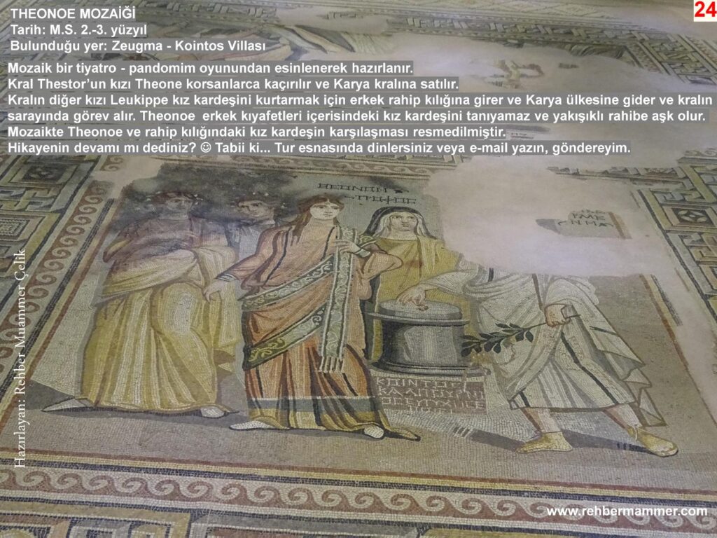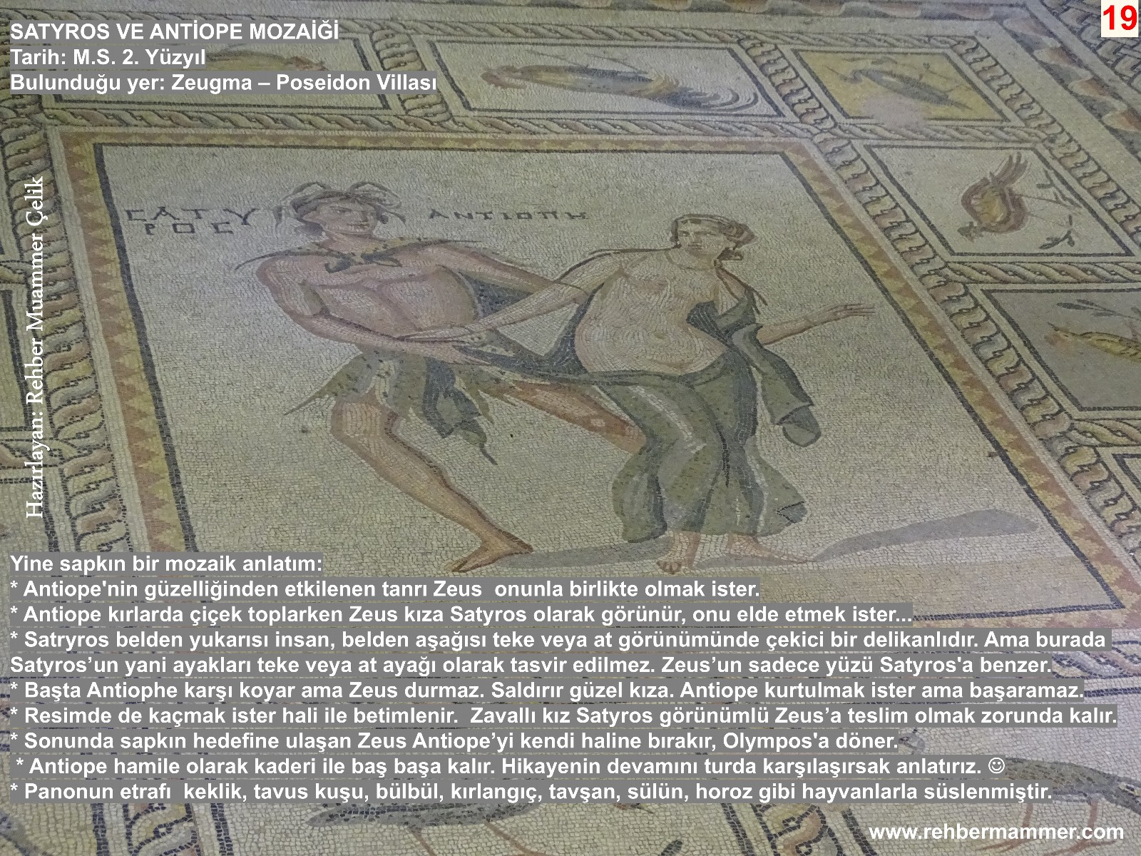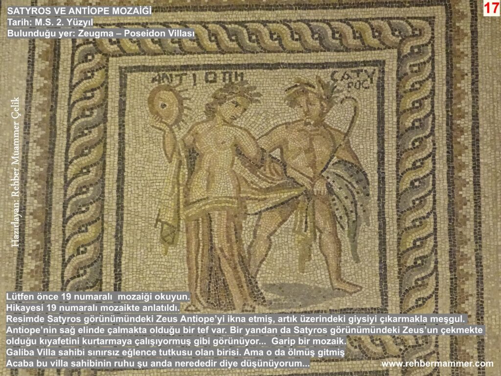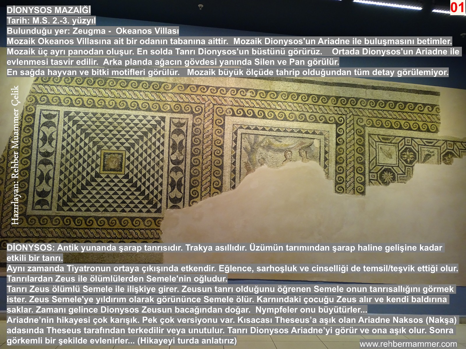 * Eserlerin büyük çoğunluğu Zeugma antik kentine ait olduğu için müze Zeugma Mozaik müzesi olarak adlandırılır.