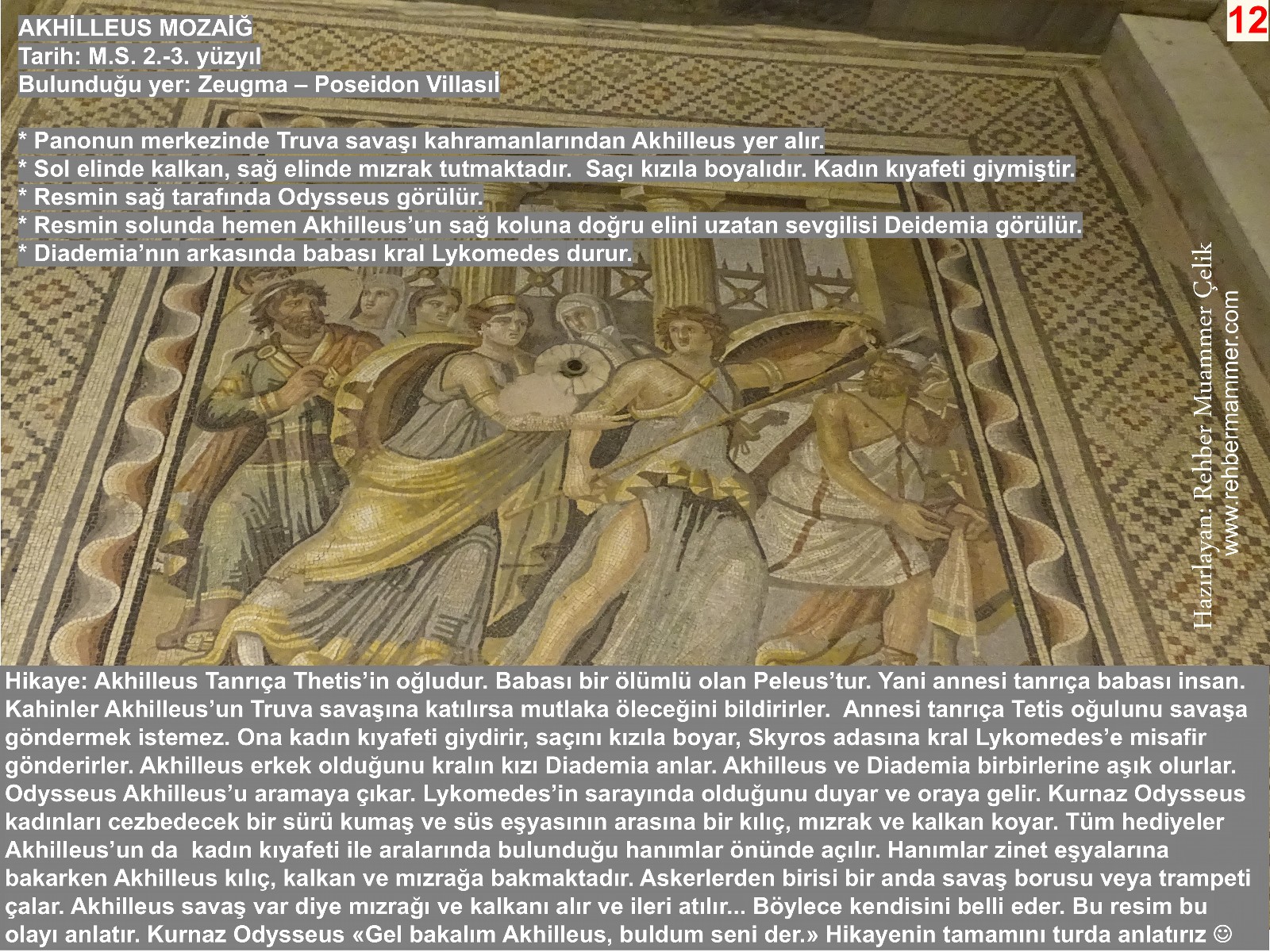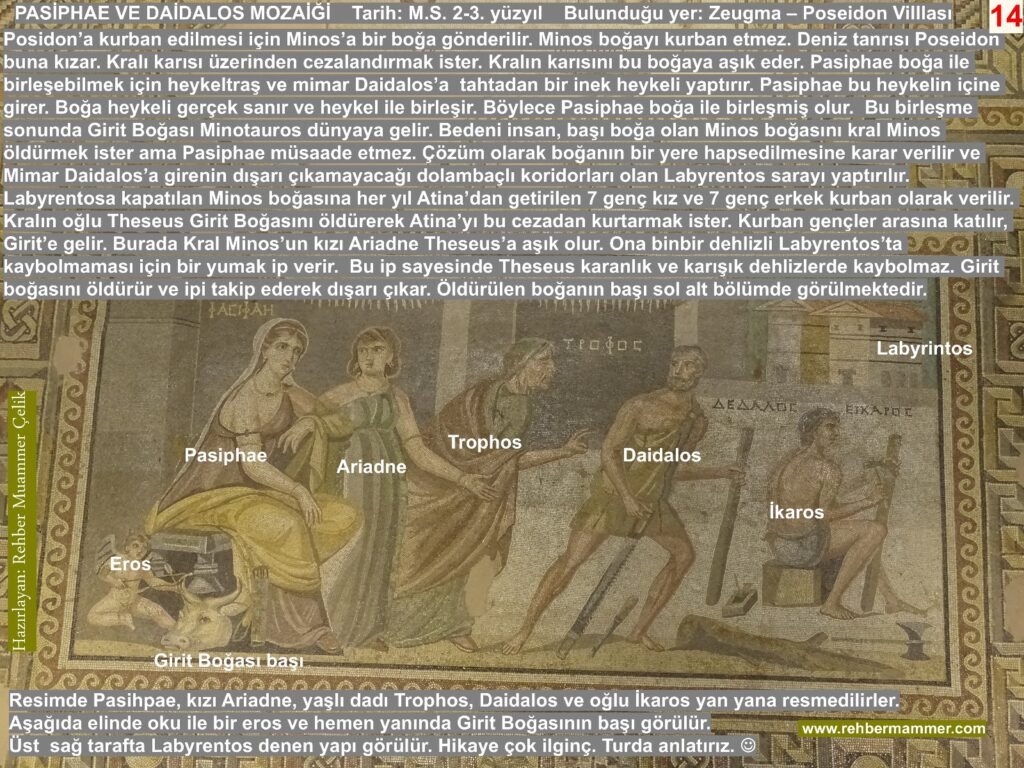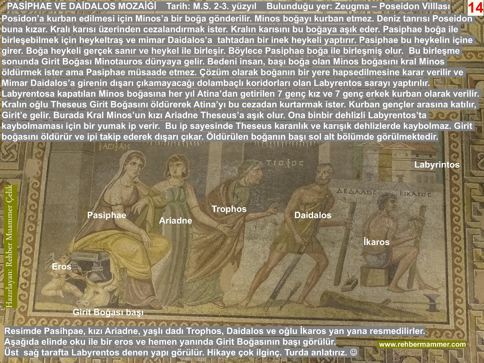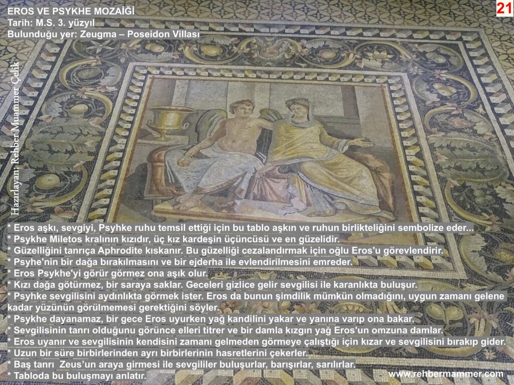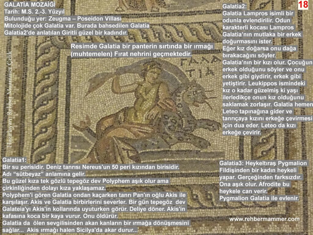 * Eserlerin büyük çoğunluğu Zeugma antik kentine ait olduğu için müze Zeugma Mozaik müzesi olarak adlandırılır.